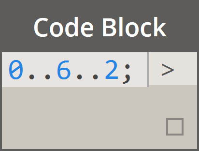 The method for defining ranges and sequences can be reduced to basic shorthand. Use the image below as a guide to the ".." syntax for defining a list of numerical data with code block. After getting the hang of this notation, creating numerical data is a really efficient process: Obsolete Ranges