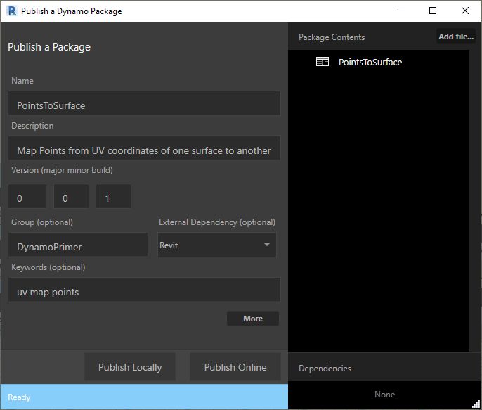 Fill out the relevant information similar to the image above and select "Publish Locally".. Note that the Group field defines the main element accessible from the Dynamo menu.