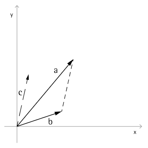 Vector addition is defined as the sum of the components of two vectors, and can be thought of as the resulting vector if the two component vector arrows are placed “tip to tail.” Vector addition is performed with the Add method, and is represented by the diagram on the left.