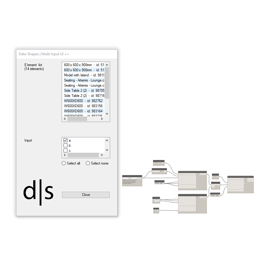 | DataShapes is a package that aims to extend the user functionality of Dynamo scripts. This has a heavy focus on adding greater functionality to Dynamo player. For more infor visit https://data-shapes.net/. Want to create awesome Dynamo player workflows? Use this package. |