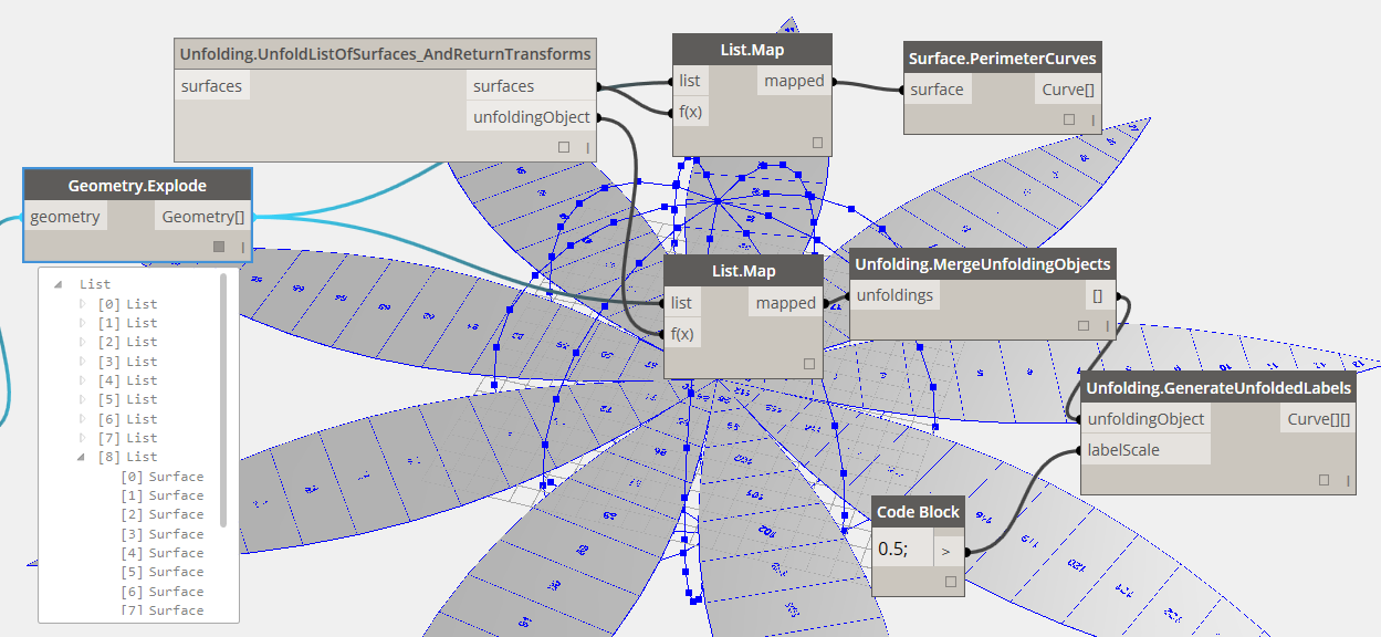 | This library extends Dynamo/Revit functionality by enabling users to unfold surface and poly-surface geometry. The library allows users to first translate surfaces into planar tessellated topology, then unfold them using Protogeometry tools in Dynamo. This package also includes some experimental nodes as well as a few basic sample files. |