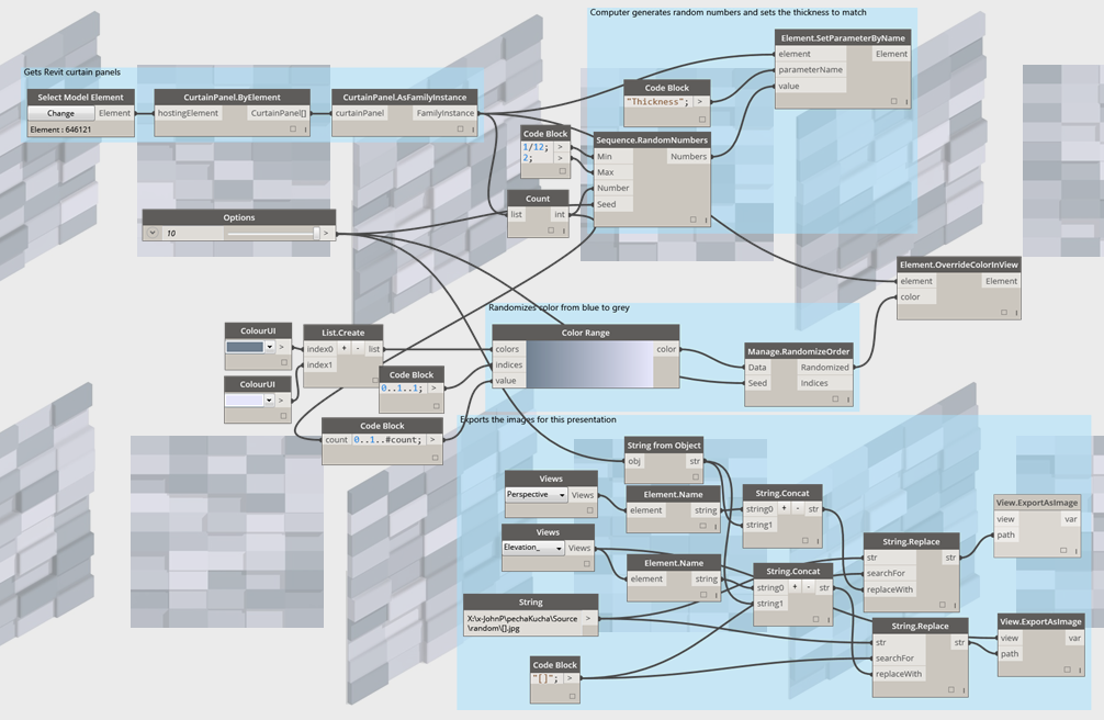 | Clockwork is a collection of custom nodes for the Dynamo visual programming environment. It contains many Revit-related nodes, but also lots of nodes for various other purposes such as list management, mathematical operations, string operations, unit conversions, geometric operations (mainly bounding boxes, meshes, planes, points, surfaces, UVs and vectors) and paneling. |